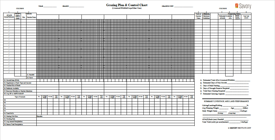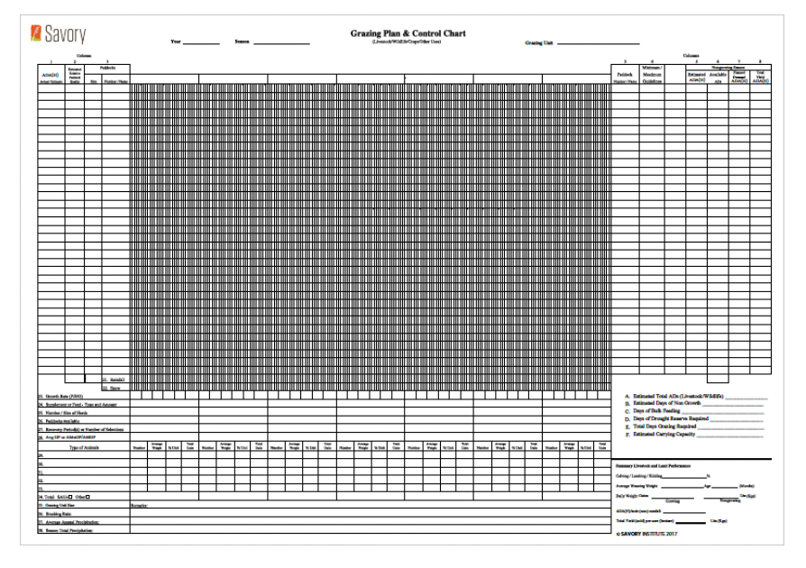 - Grazing Plan and Control Chart (20 paddocks) with two printing options